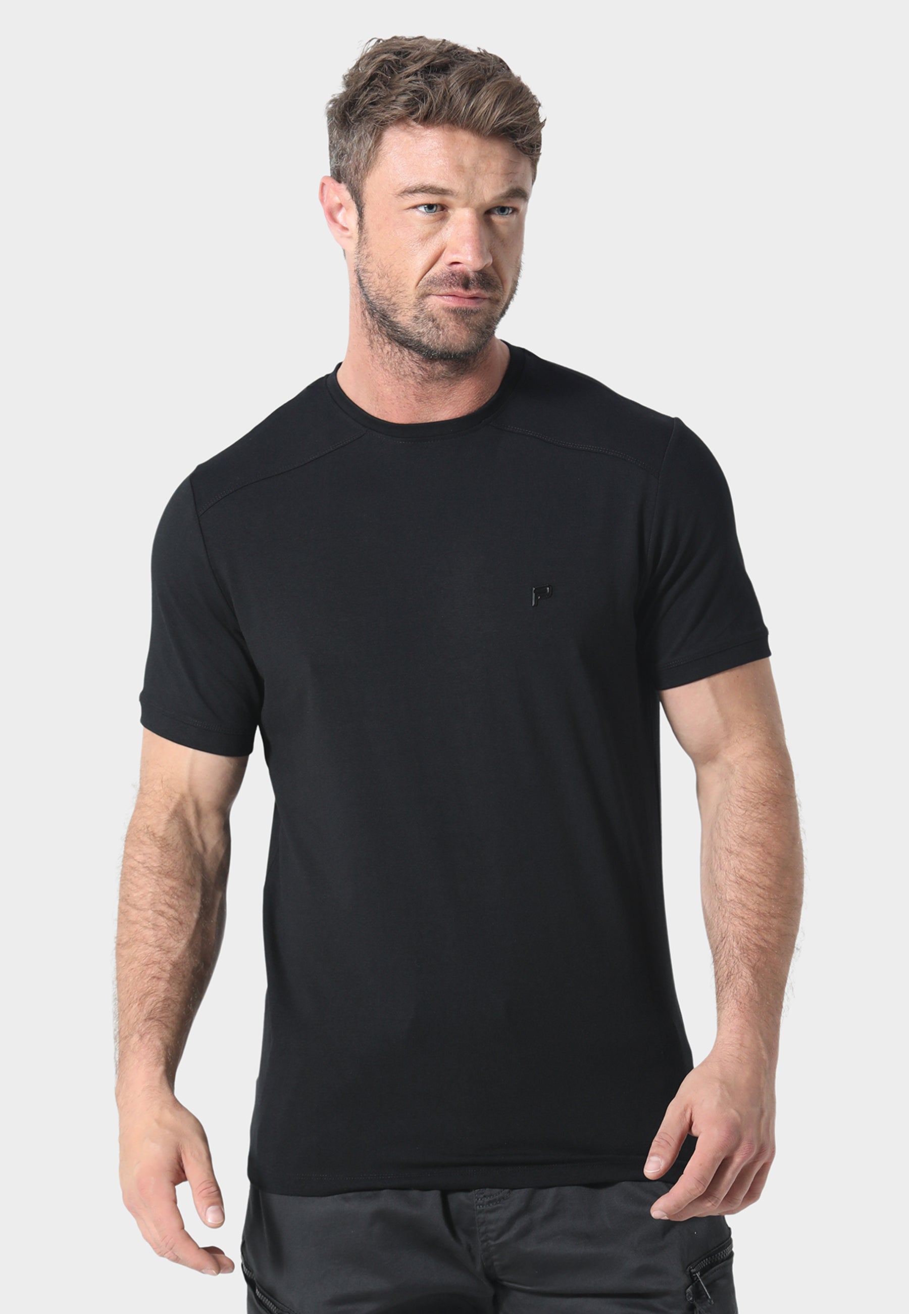 Elevate your basic t-shirt collection with the Gambit Black T-Shirt. Featuring a cut and sew top stitch detailing for a touch of sophistication. Complete with our metal 'P' chest emblem, this t-shirt is a staple item for the Autumn/Winter season.