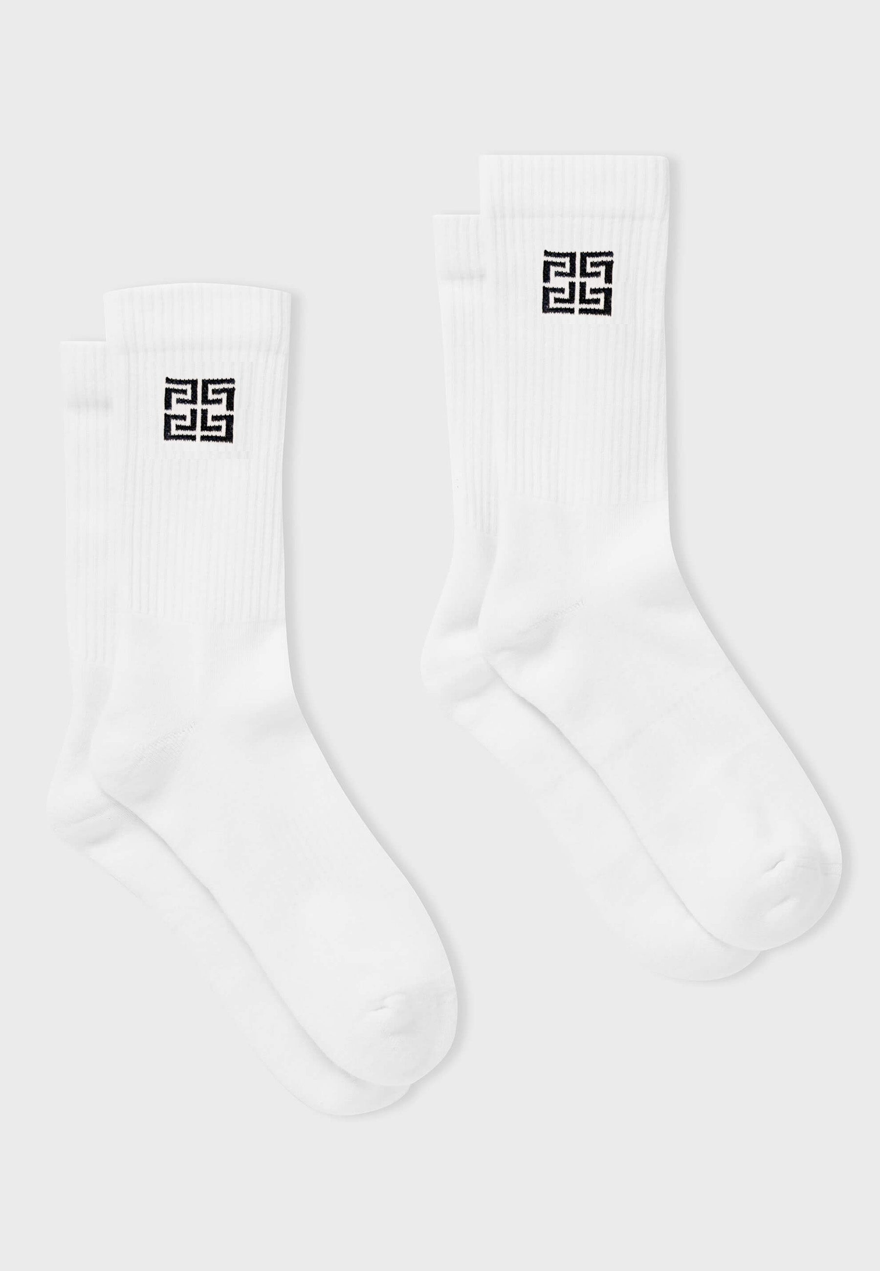 Elevate your style with the Maxoni White 2 Pack Socks. These socks offer a versatile, varsity look with their pure white design. The black repeat P logo adds a pop of style to the socks, while the comfortable material provides maximum comfort.