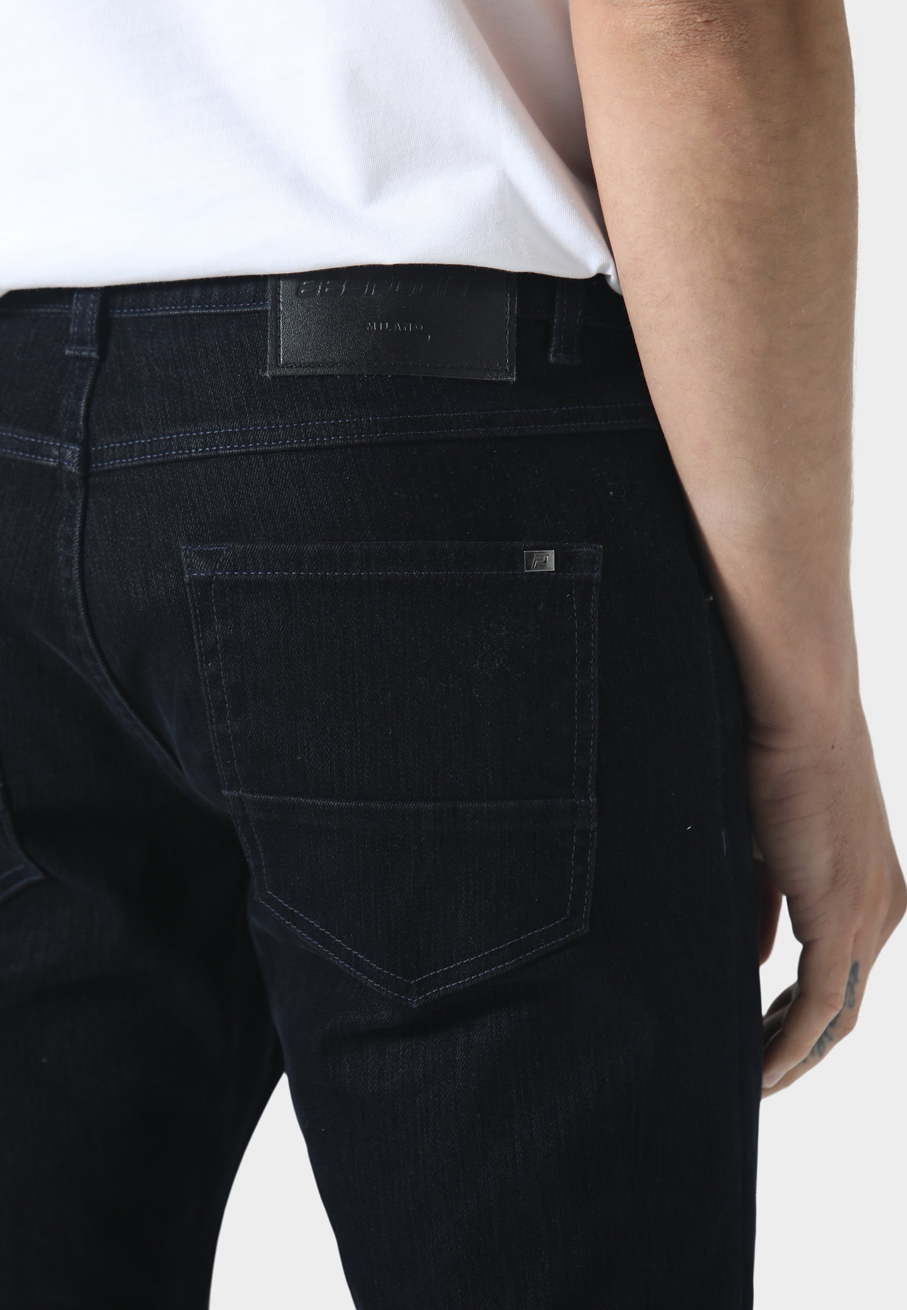 The Dino TODD 1048 Slim Fit Jeans in a Dark Indigo Wash combine refined styling with a modern silhouette. Designed in a 5 pocket construction, they offer everyday versatility while maintaining a clean, streamlined look. The zip fly with button fastening ensures a secure fit, and the leather waistband patch alongside the metal ‘P’ emblem on the coin pocket add premium finishing touches. Crafted from soft, stretch denim for enhanced comfort, these jeans deliver a sharp, contemporary fit ideal for smart-casual dressing.